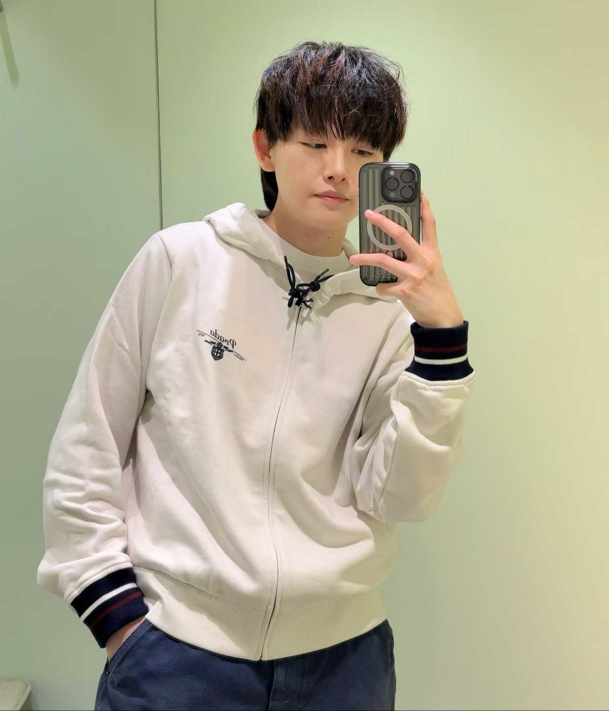 프라다 2026 밀라노 로고 스트라이프 엣지 후드 집업 자켓 > 후드자켓 / 가디건 - 레플리카매니아