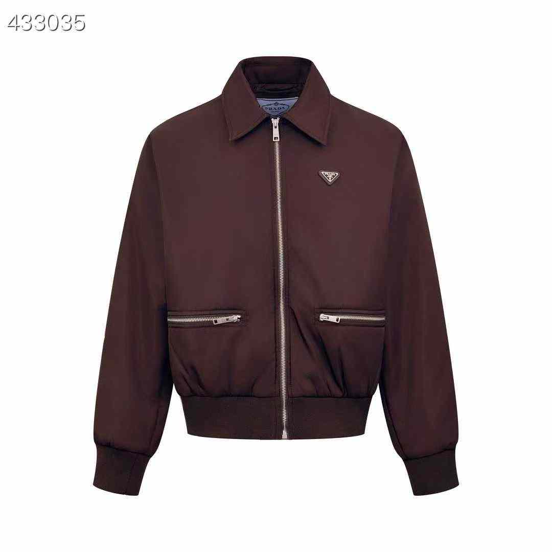 프라다 2025 브라운컬러 스틸사피아노와펜 카라 블루종 자켓