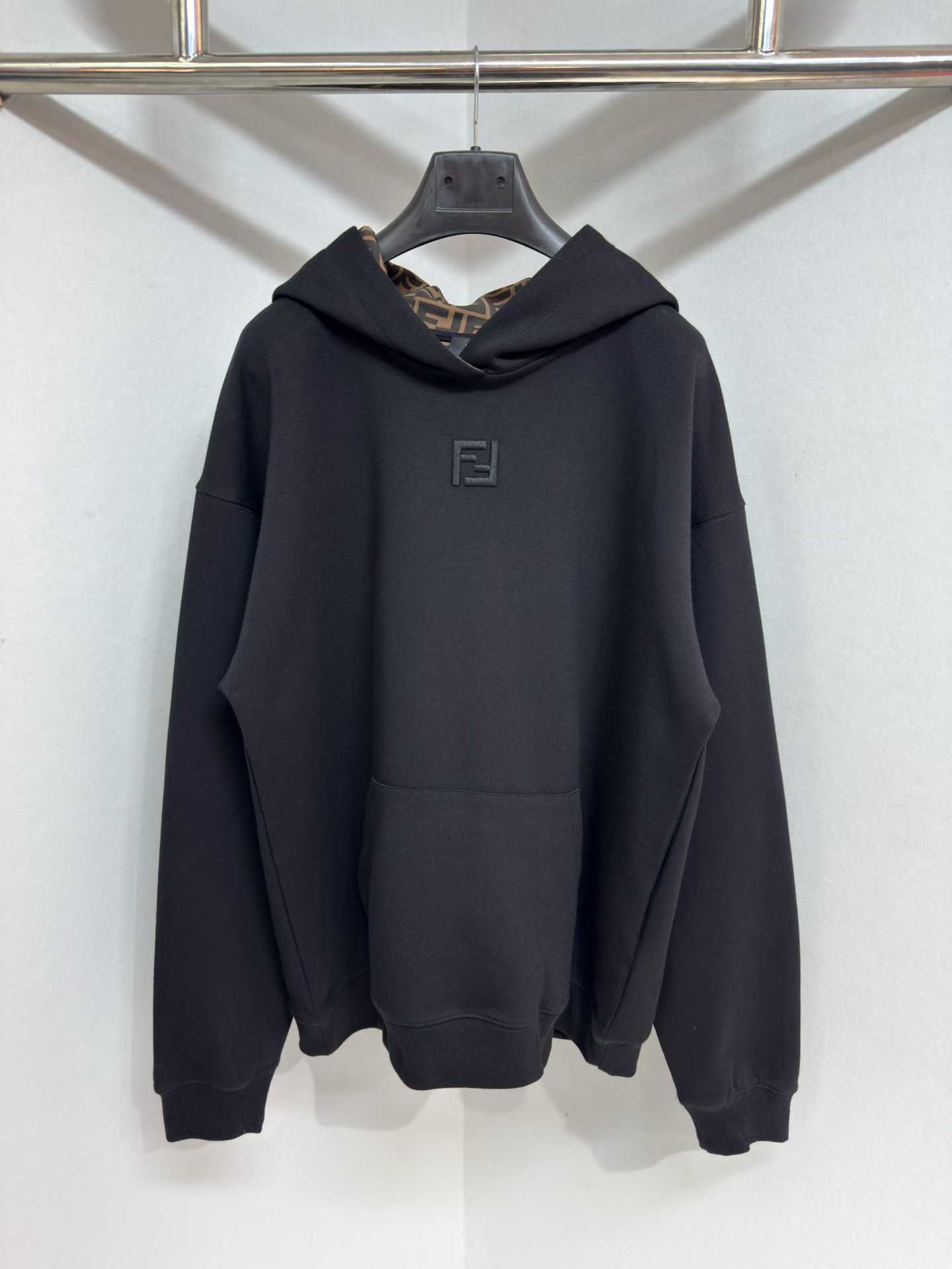 펜디 2025 센터 FF로고 인사이드 자카드 블랙컬러 후드 티셔츠
