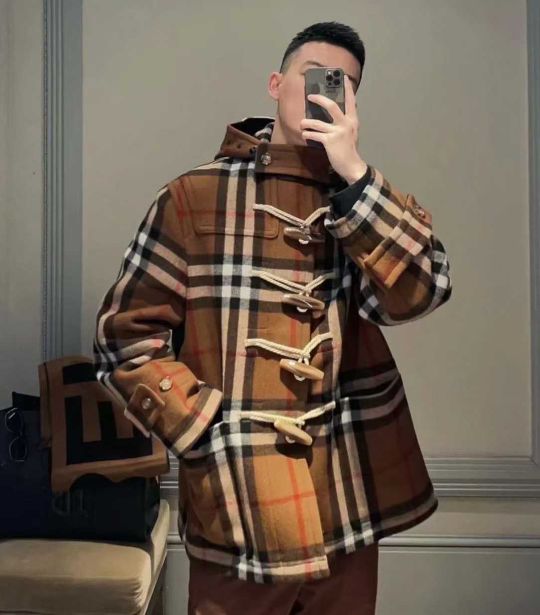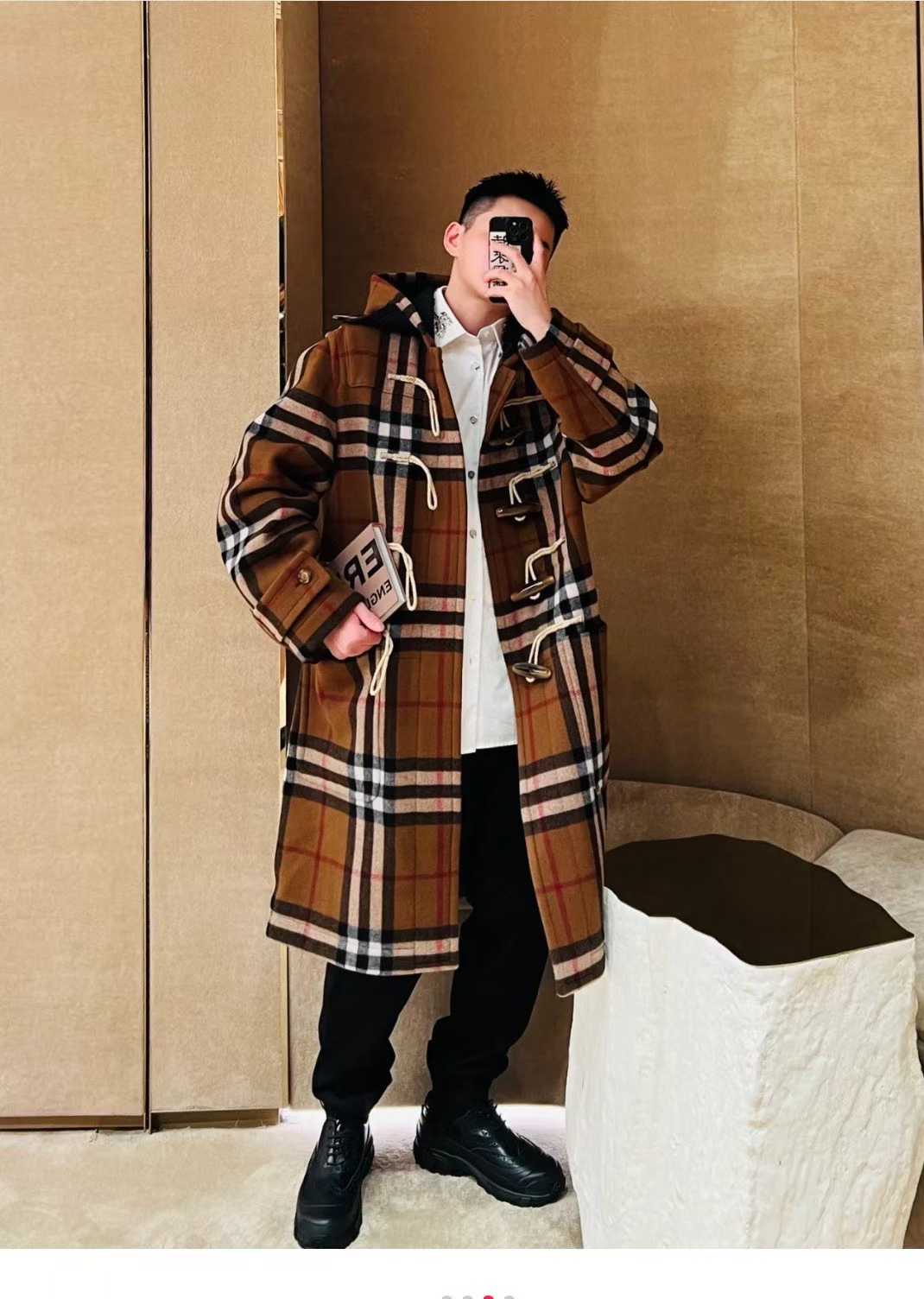 버버리 2025 캐시미어 블랜드 숏 더플 코트 체크 브라운 컬러